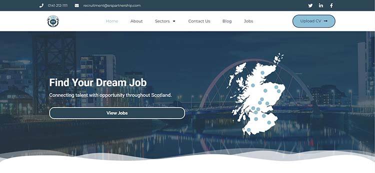 Recruitment website with interactive job board, and functions for users to apply for roles and upload their CV.