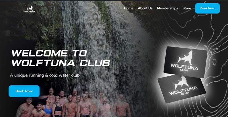 Website for a running and cold water club. Dark, slick and stylish themed with an online store and booking system.