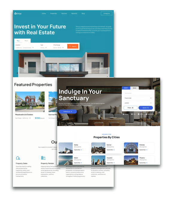Showcase your properties in style with beautifully designed listing pages that captivate potential buyers and renters. Highlight key features with high-quality images, detailed descriptions, and interactive elements like location maps.